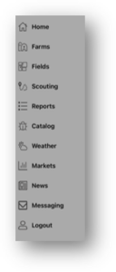 Download the “DTN Agronomy” app from the app Store You will receive a Welcome Email inviting you to setup your password Login to the app with your email address and password Select the menu button to see all menu options